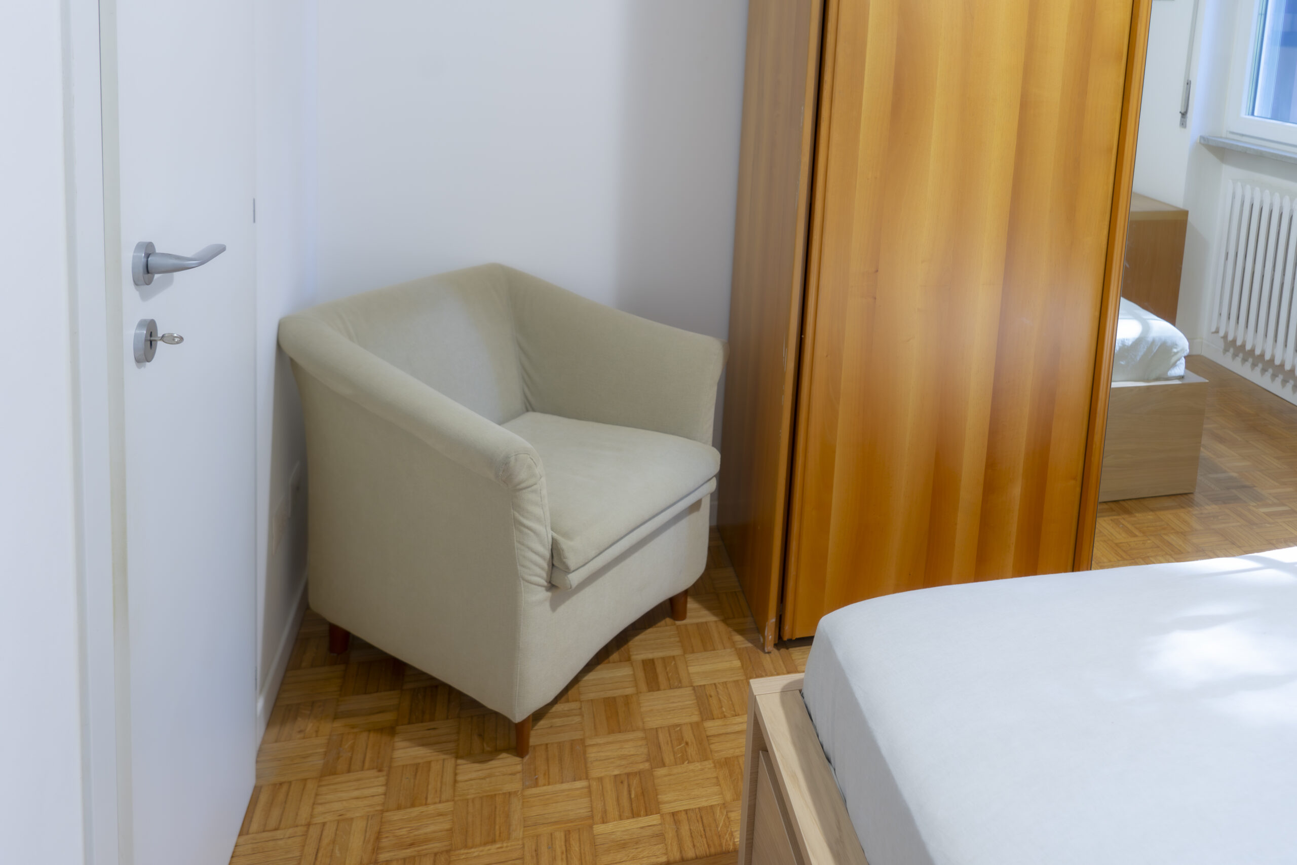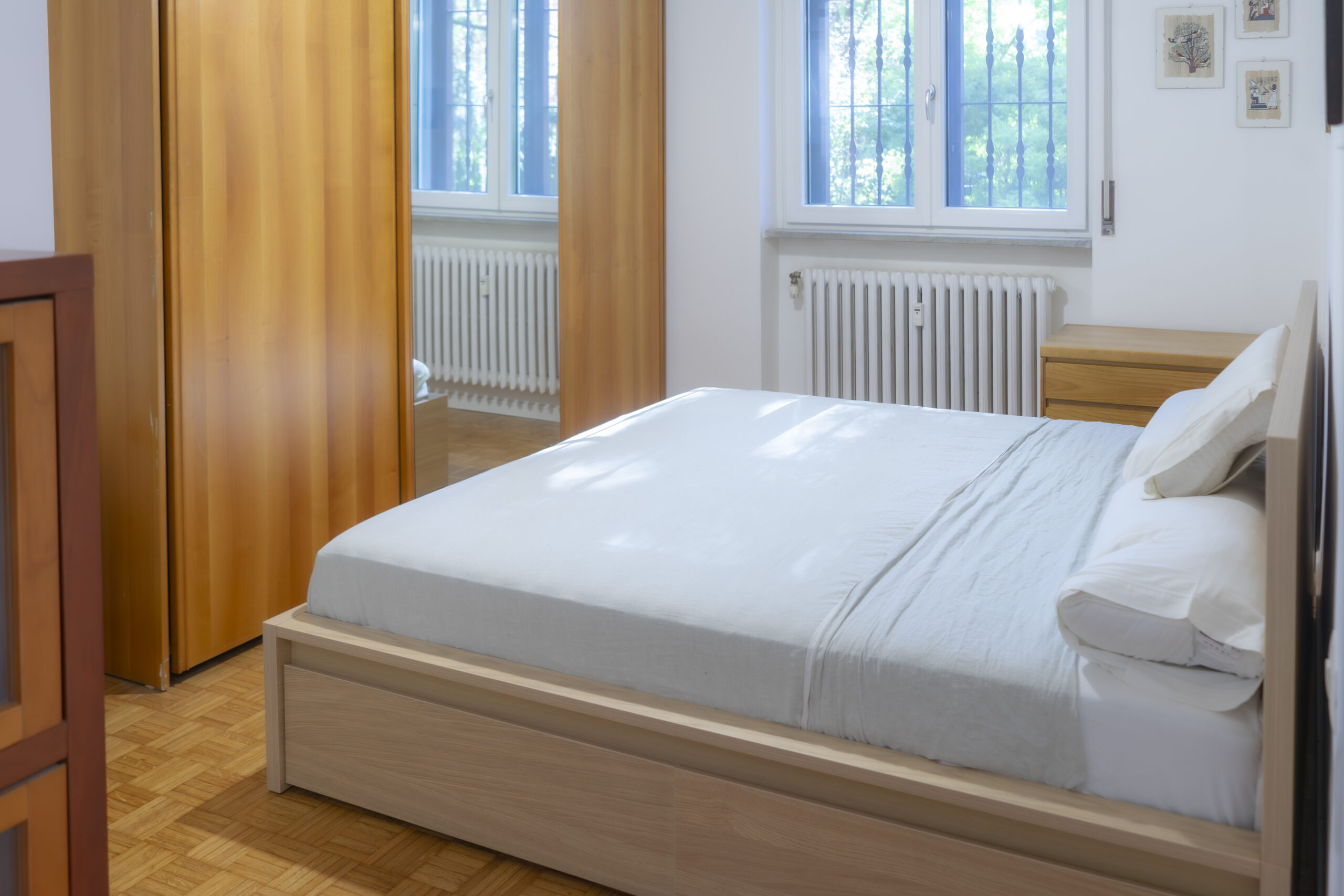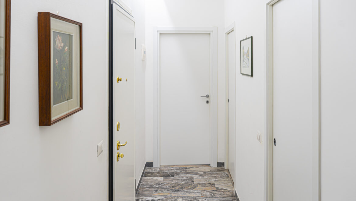 La camera matrimoniale, dotata di una pratica cabina armadio, offre spazio e privacy, mentre il bagno finestrato garantisce luminosità e ventilazione. L’appartamento è situato al primo piano di uno stabile con ascensore e portineria, assicurando comodità e sicurezza. Inoltre, la climatizzazione e le finestre con doppi vetri rendono l’ambiente confortevole in ogni stagione.