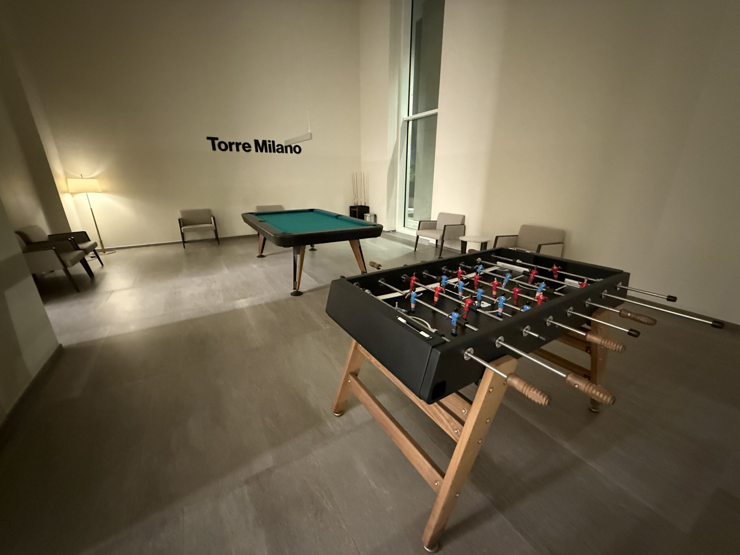 aree hobby con biliardo e ping pong e di una terrazza panoramica al 24° piano che offre una vista mozzafiato sullo skyline milanese. Servizio di conciergerie attivo 24 ore su 24.