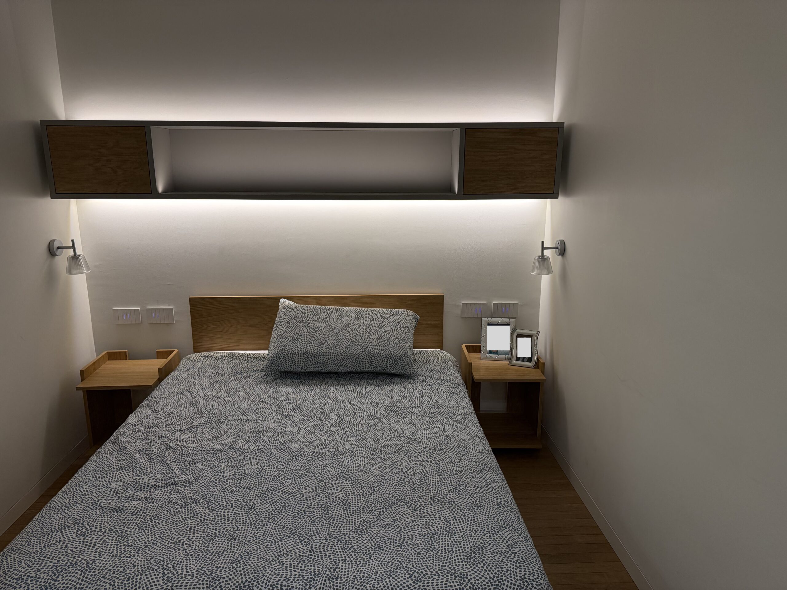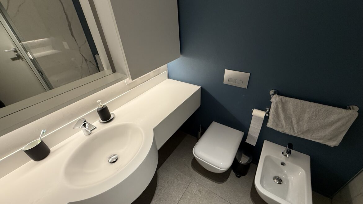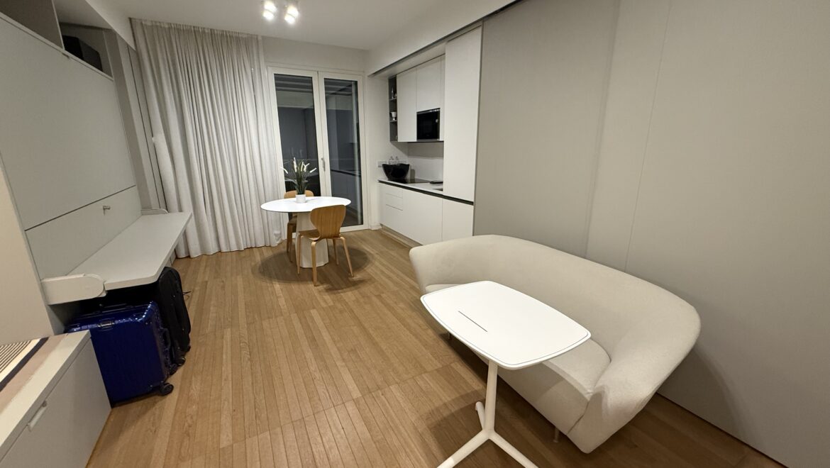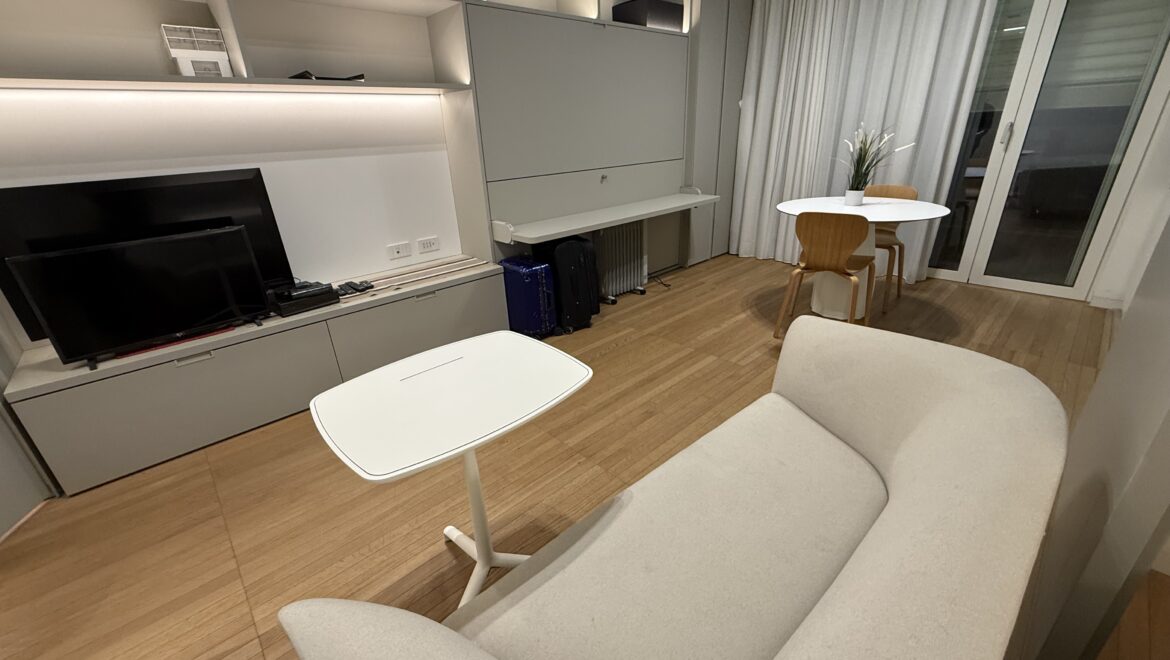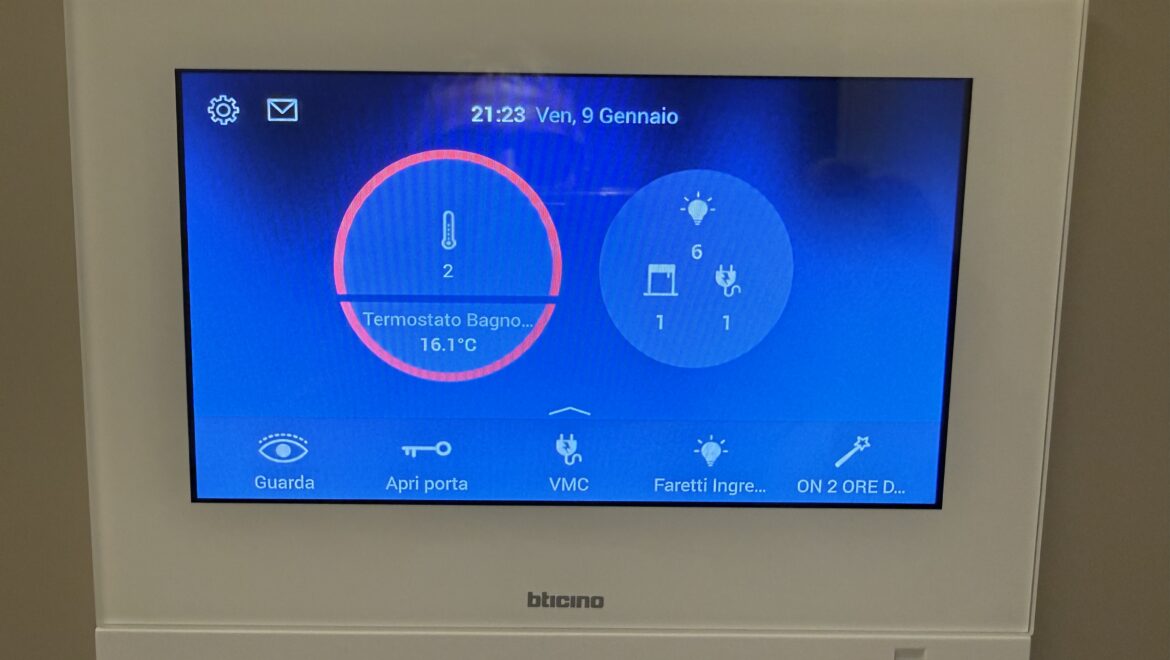 Il soggiorno si affaccia su un comodo terrazzino, ideale per godere di momenti di relax all’aperto. L’appartamento è dotato di un avanzato sistema domotico MyHOME_Up di BTicino.